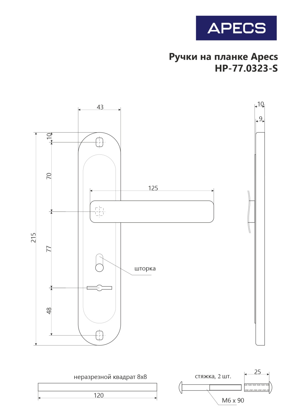 Апекс HР-77 0323-S-C CR (хром) Гардиан 3011, 1011 Комплект ручек