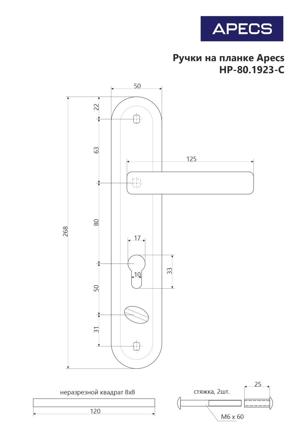 Apecs HP-80.1923-C-CR-R правая хром Комплект ручек