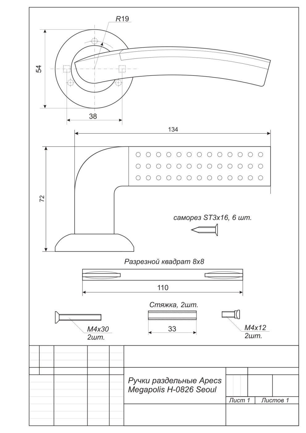 Apecs ручки раздельные H-0826-А-CR (хром) "SEOUL" Megapolis