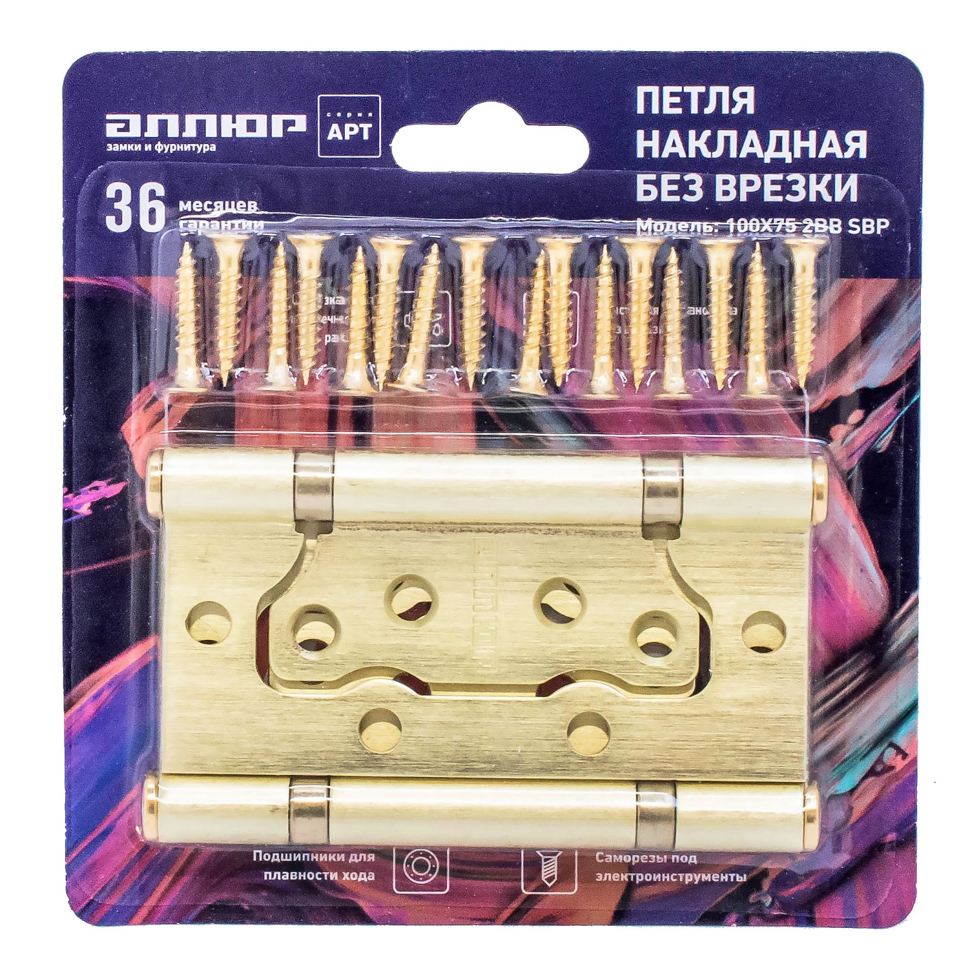 Петля накладная без врезки 100х75 2ВВ SВР (мат.золото)