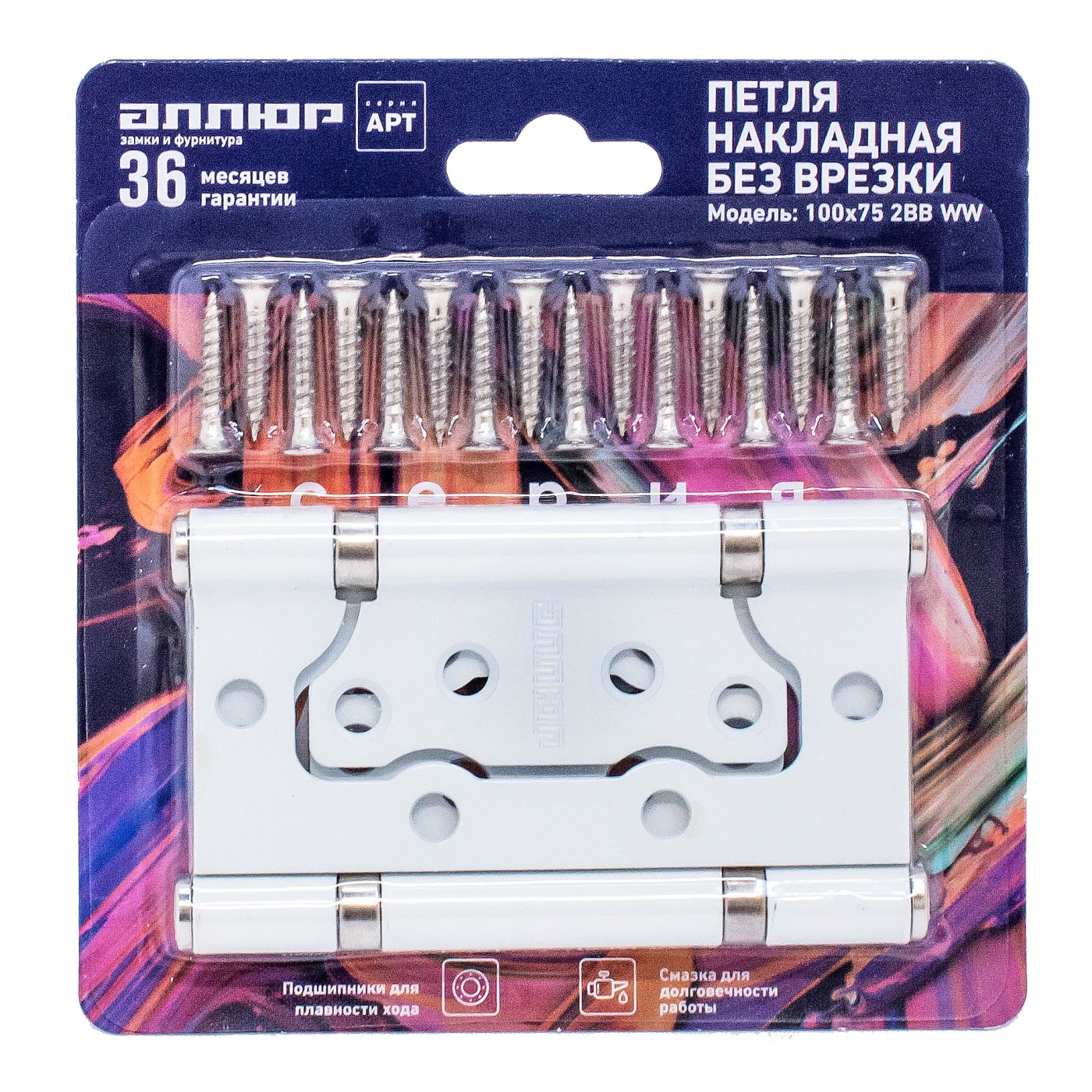 Петля накладная без врезки 100х75 2ВВ WW (белая)