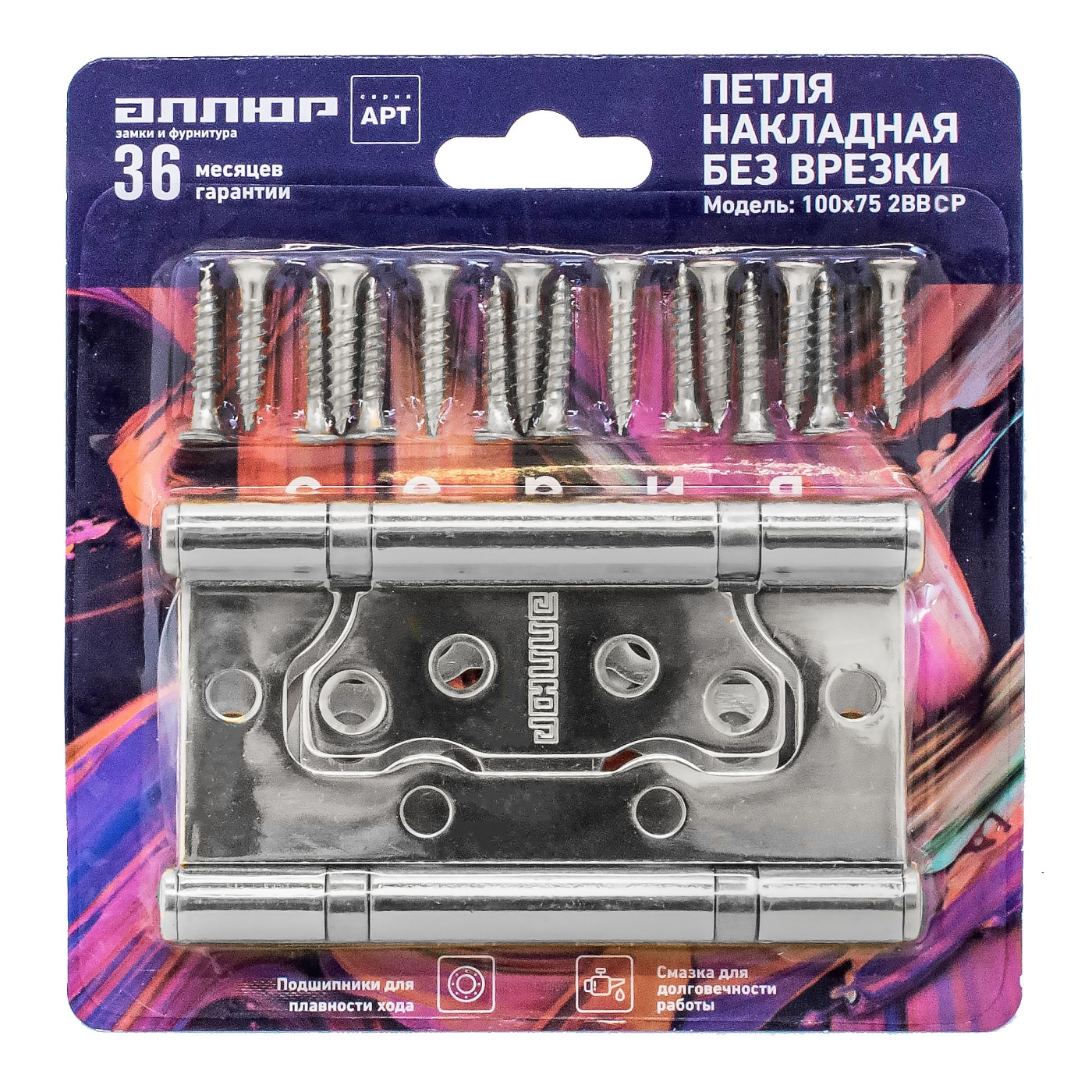 Петля накладная без врезки 100х75 2ВВ СР (хром)
