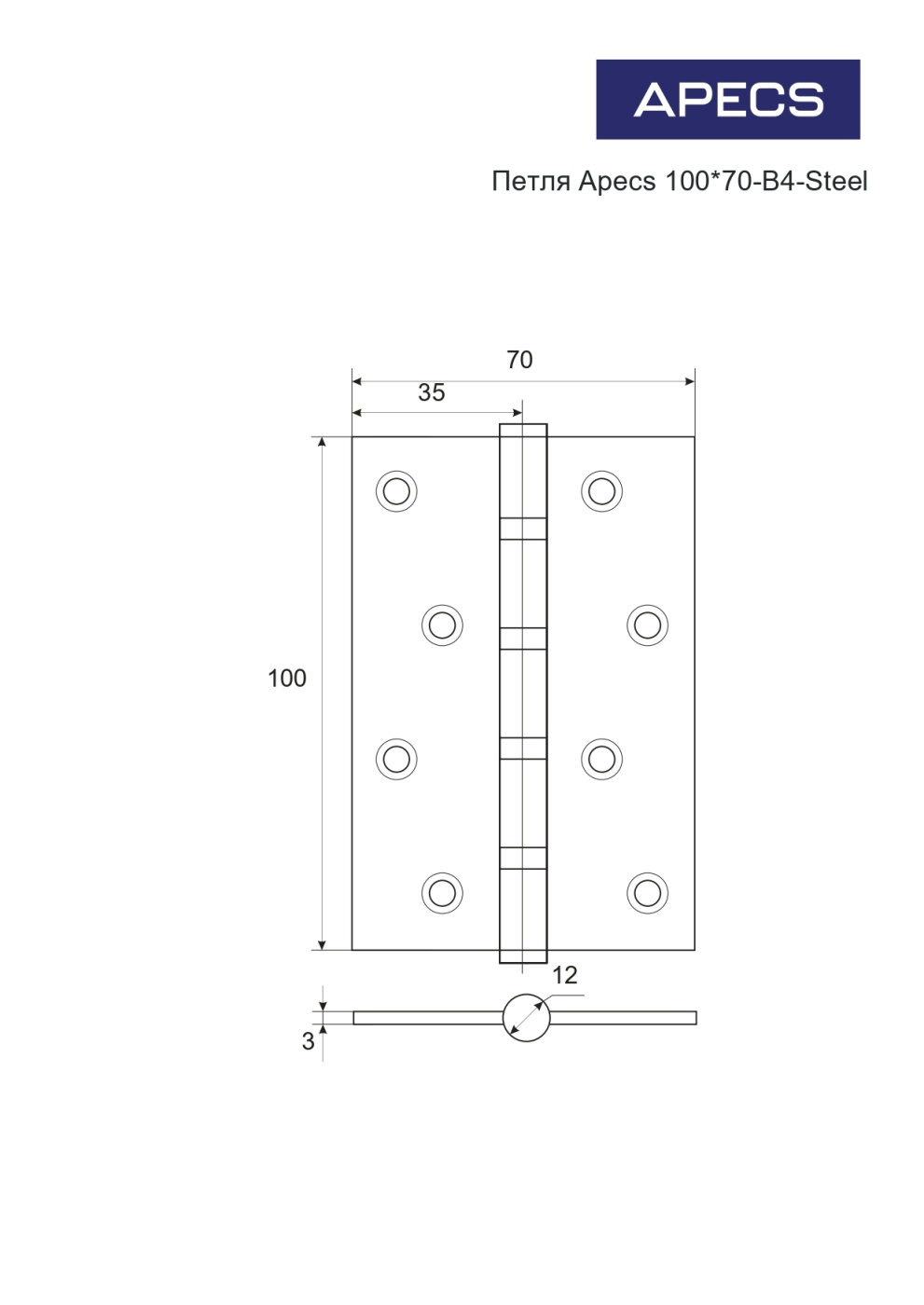 APECS петли 100*70-B4-Steel-АС (медь)