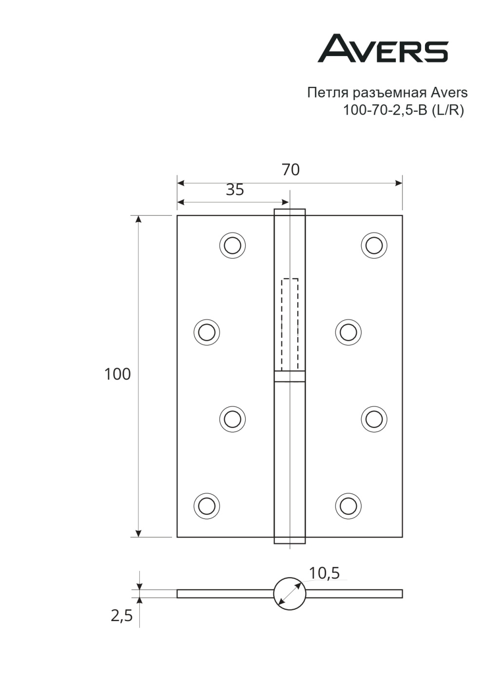 AVERS петля съемная 100*70*2,5-B4-CR (хром) L