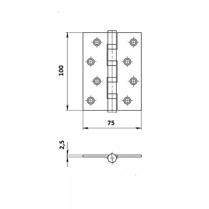 В комплекте: универсальная врезная петля Palladium N 500 C-S-4" (1 шт.), шурупы в цвет (8шт.)