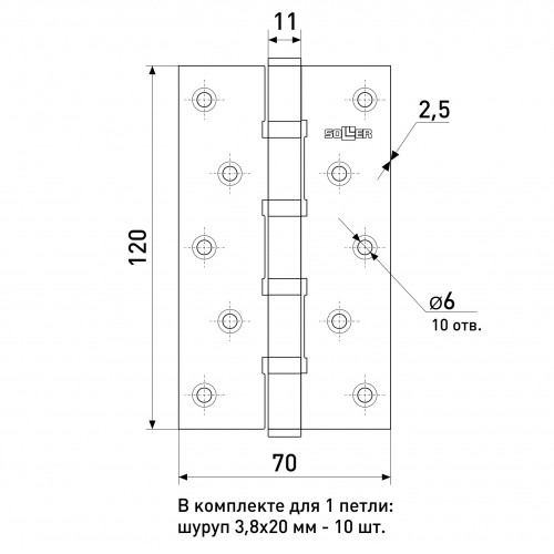 Петля Soller 5" сталь золото прям. (120*70*2,5)