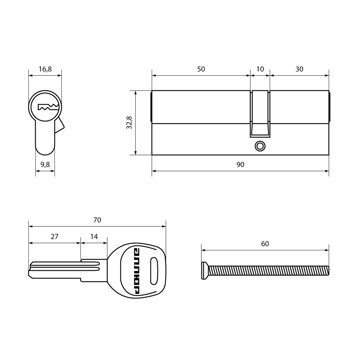 АЛЛЮР F 90 (35*55) PB перфокл/кл Цилиндровый механизм (латунь)