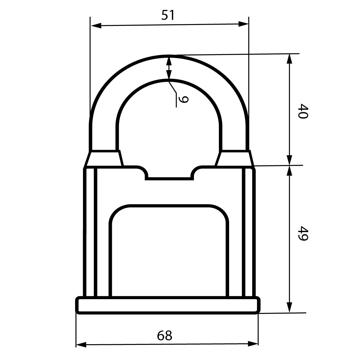 Ширина основания корпуса - 60мм, диаметр дужки 9мм.