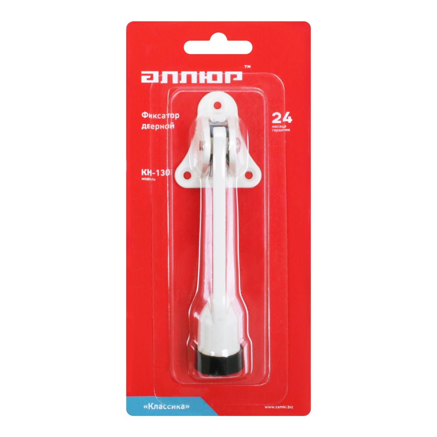Фиксатор дверной Аллюр КН-130 WW белый "козья ножка" Блистер