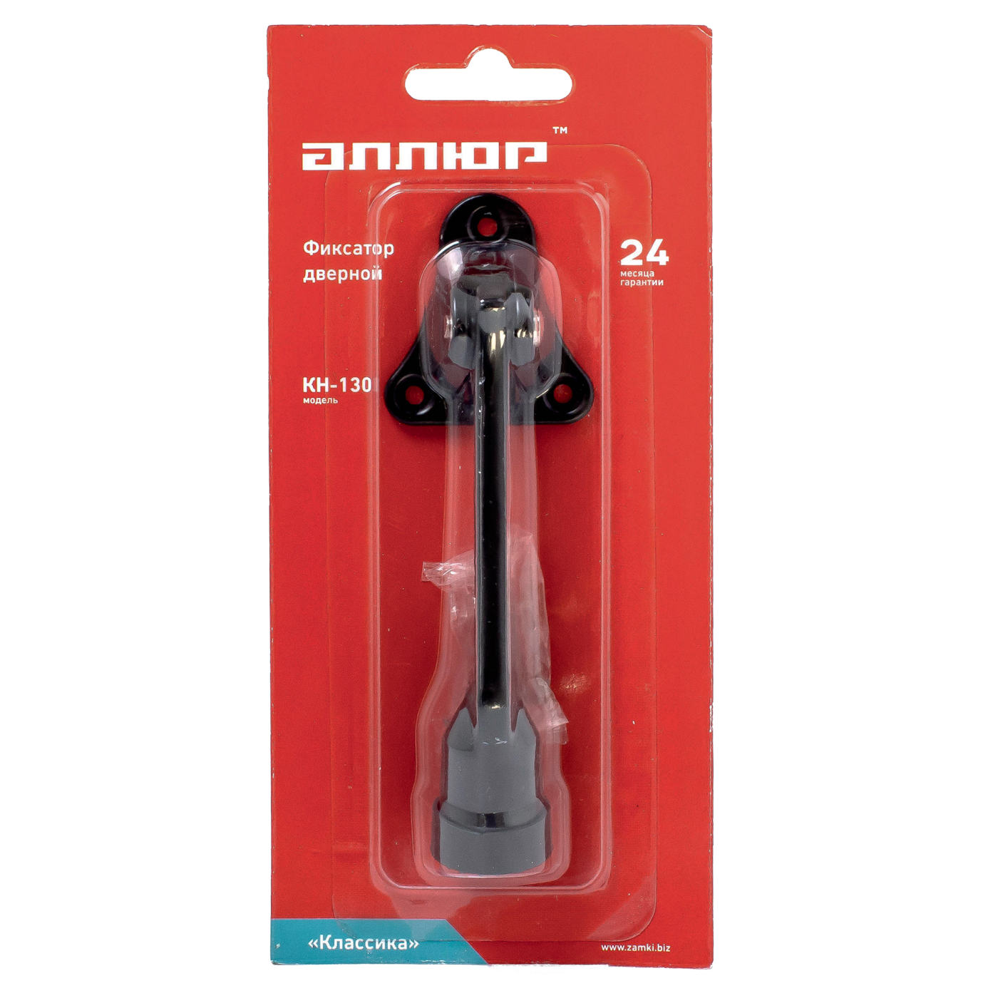 Фиксатор дверной Аллюр КН-130 черный "козья ножка" Блистер