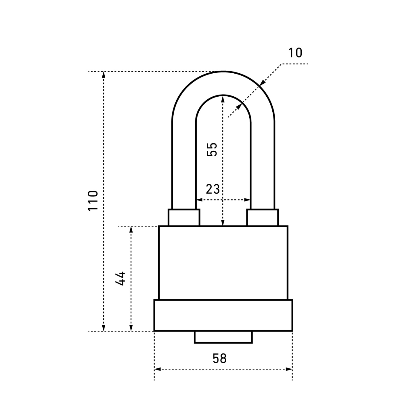Ширина основания корпуса - 60мм, диаметр дужки 10мм.