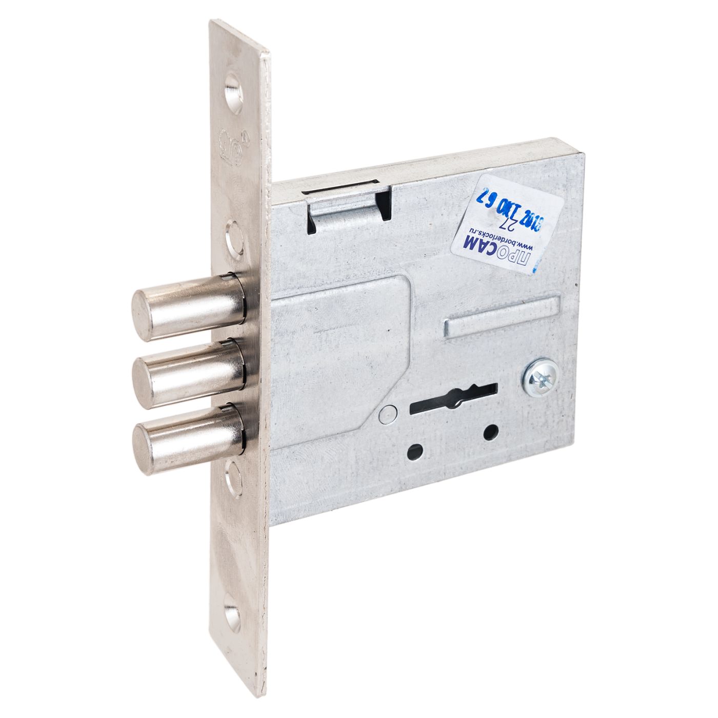 Три цилиндрических ригеля диаметром 11мм, вылет 21мм. Удаление ключевого отверстия 51мм. Стальной оцинкованный корпус. Ширина торцевой планки 25мм. Заявленная секретность 120 000 кодовых комбинаций. Замок имеет защиту от высверливания. Изготовлен из высокопрочных материалов.