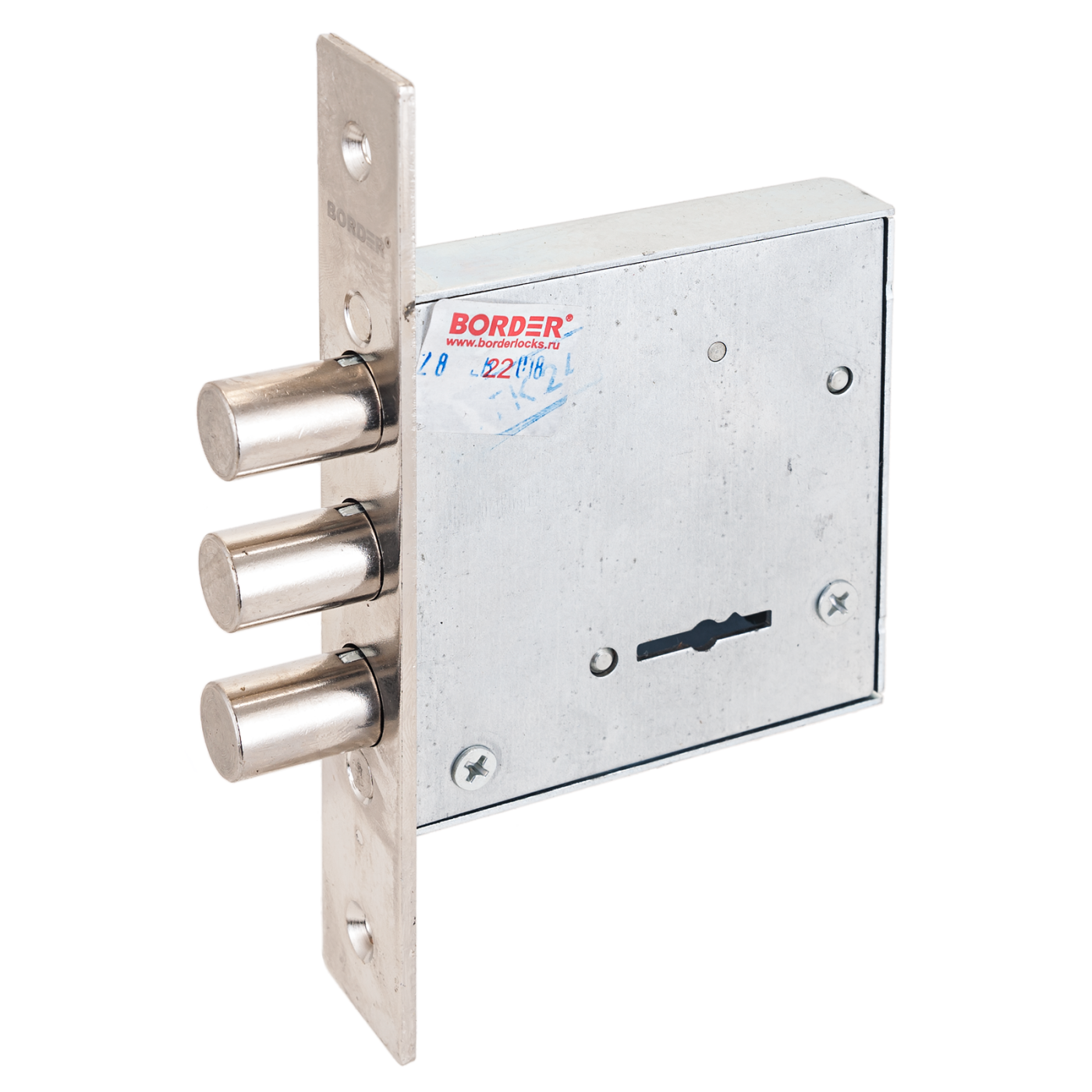 Три цилиндрических ригеля диаметром 13,7мм, вылет 22мм. Удаление ключевого отверстия 51мм. Стальной оцинкованный корпус. Ширина торцевой планки 25мм. Заявленная секретность 250 000 кодовых комбинаций. Замок имеет защиту от высверливания. Изготовлен из высокопрочных материалов.