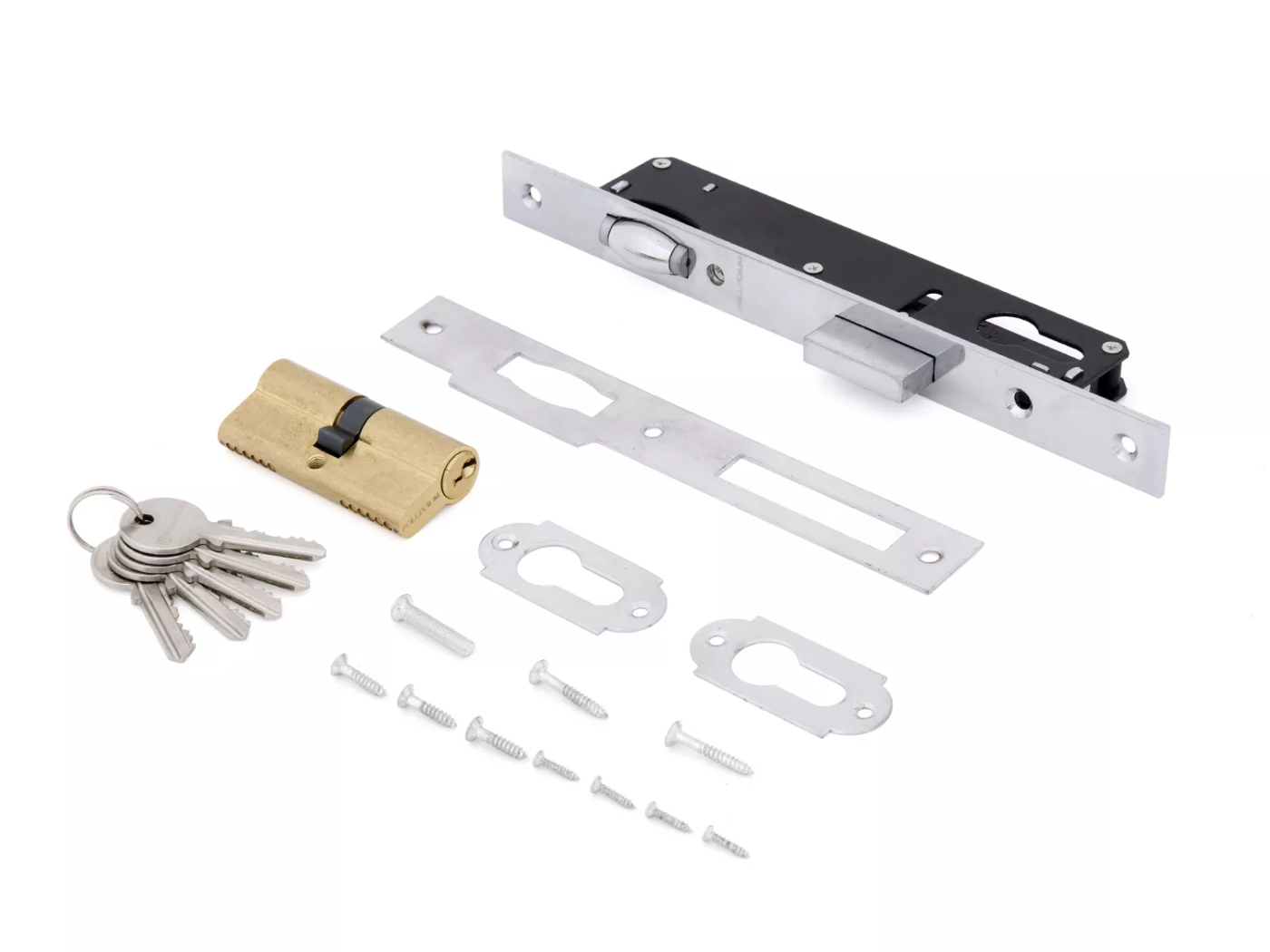 Бэксет - удаление ключевого отверстия 20 мм. Секретность цилиндрового механизма 46600 комбинаций. Шариковый подшипник в узле ручки обеспечивает плавность хода ригелей, легкое вращение ручки и увеличивает срок эксплуатации замка. Межосевое расстояние: 85 мм. Типоразмер цилиндра: 70 мм. Количество ригелей: 1 Усиленный корпус замка изготовлен из стали толщиной 1,4 мм. Тип защелки: универсальная (правая/левая)